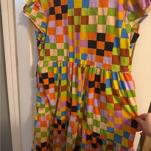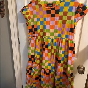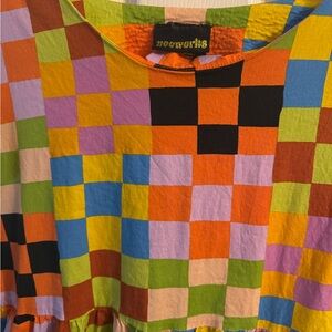 Vibrant checkered midi dress by Nooworks. Features a lively mix of colors. Perfect for casual wear.