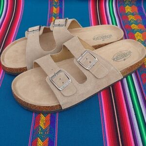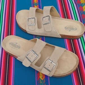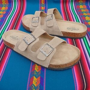 Woodstock Men's Vintage Brand NY Leather Cork Strap Sandals Tan size 11