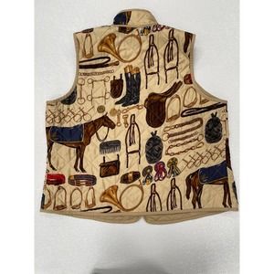 Ralph Lauren LRL Reversible Quilted Vest Silk Equestrian Horse Bit Print Size 1X