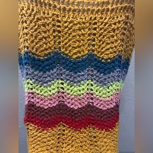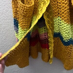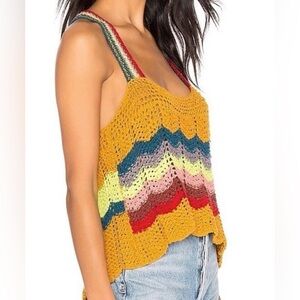 Free People Winding Road in Yellow Crochet Open Back Knit Tank Top M