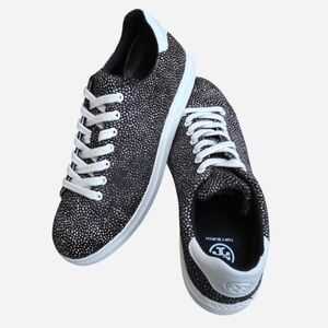 Tory Burch Howell Court Haircalf Spotted Brown and Cream Leather Sneakers Size 9