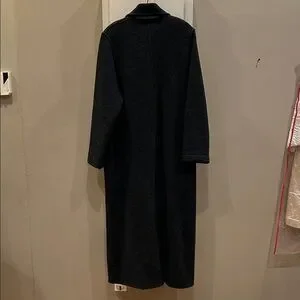 Elegant long dark Gray boiled wool coat with zipper & button closure. Features side pockets and a classic collar. please know your measurements.