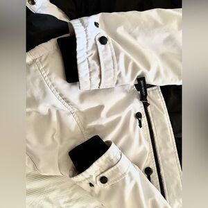 Purchased this parka from Mark’s in Yellowknife in 2010 or 2011, all zippers and buttons work except ONE of the middle snaps on the back flap, see photo with my finger pointing to it.
