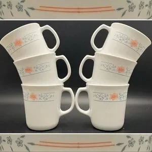 Corning USA Apricot Grove Coffee/Tea Mugs • Set of 6 Cups • Vintage Corelle