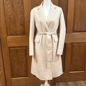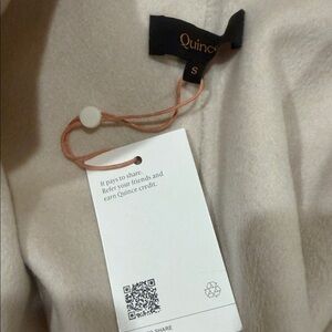 Elevate your wardrobe with this 100% cashmere unlined double-faced wrap coat with two side pockets and removable belt. Made from Mongolian cashmere known for its crazy soft feel and toasty warmth. It features flap pockets and a notched lapel. The removable belt lets you cinch the waist for s perfect fit. This coat is $500 on Quince web site and is no longer available in this color. It will not be restocked and never goes on sale. New with tags.