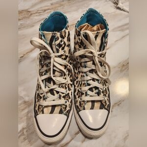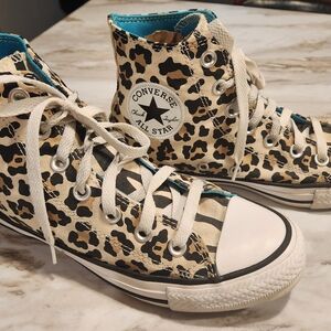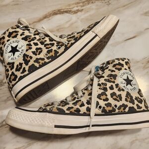 Step out in style with these Converse high-top sneakers featuring a bold leopard print. Perfect for adding a wild touch to any outfit.
