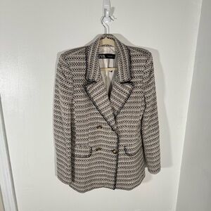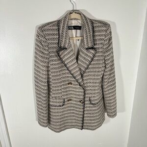 NEW Zara Boucle Tweed Double Breasted Blazer Jacket