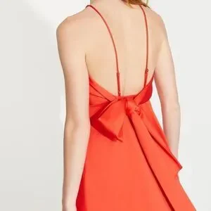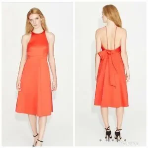 Halston Heritage Satin Bow Back Red Lipstick Dress A-line Holiday