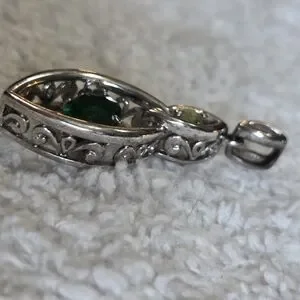 Elegant Silver Pendant with Green Gemstone