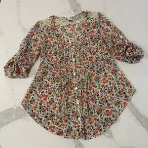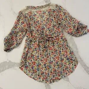 American Rag Cie Cottagecore Floral Tie Back Sheer Peasant Top Womens Small Lace