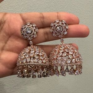 These stunning set feature a blend of rose gold and silver tones, adorned with sparkling crystals. Perfect for adding a touch of elegance to any outfit.