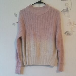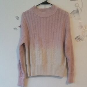 Anthropologie Pink and Cream Cable Knit Sweater M