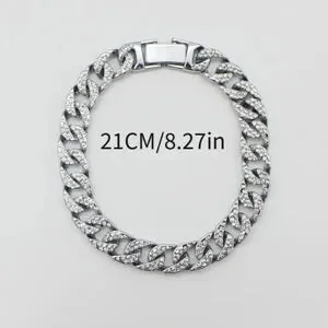 Make a bold statement with my icy bling thick Cuban link metal bracelet. Available in a silver color, this stylish accessory is designed to catch the light and sparkle. Elevate your jewelry collection with this stunning piece.