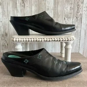 Ariat Black Western Turquoise Embroidered Women's Leather Mules 10