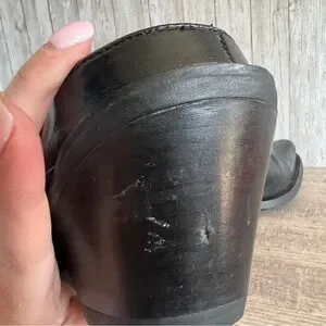 Elegant black mules with intricate embroidery. Comfortable and stylish for any occasion. These are in great condition and only flaw is imperfection on the one back heel as shown. Size 10