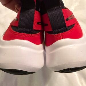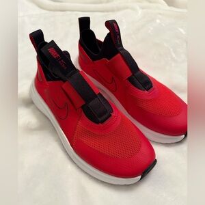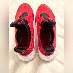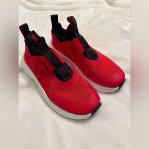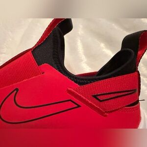 Dynamic Nike slip-ons in vibrant red and black. Designed for comfort and style.