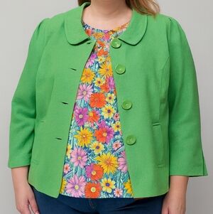 Dialogue Green Textured Button-Front Blazer Jacket Plus Size 2X