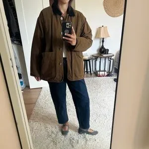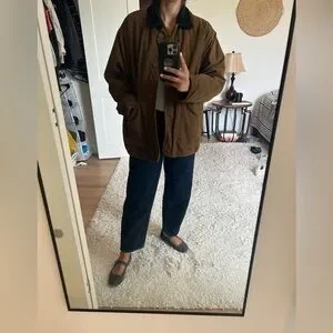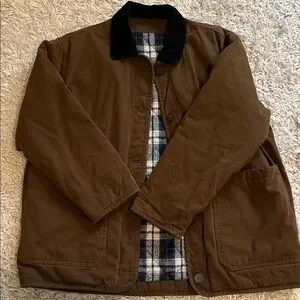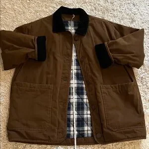 Women’s winter dark brown Barn Jacket with corduroy Black Collar