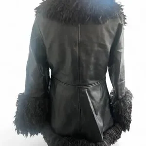 Soft shearling coat with hook and eye closure at the front and pleather.
