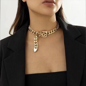 NWOB Belt Buckle Gold Chain Choker Necklace by JAYNEE Jewelry