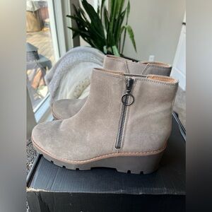 VIONIC HAZAL WEDGE BOOTIES IN STONE SUEDE 8