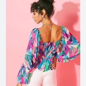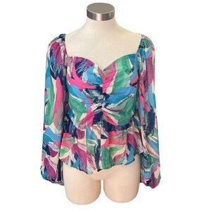 Flying Tomato Women Top Close To Me Floral Smocked Sweetheart Neckline Sz. L