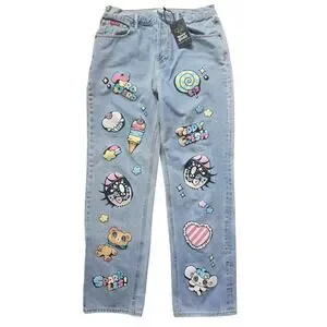 *NWT Teddy Fresh x Yurie Sekiya Womens Jeans Size 30 High Rise Straight Kawaii