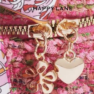 NWT Pink Tweed Vanity Case Bag Chain Strap Silk Scarf Happy Lane