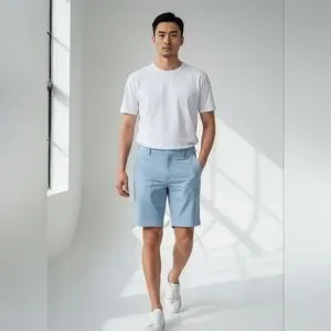 Stylish and comfortable light blue shorts perfect for casual outings. Enjoy a relaxed fit with a modern look.