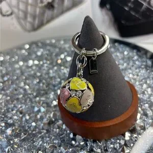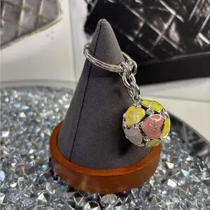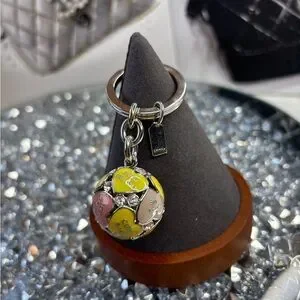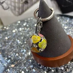 Coach 3D Poppy Bag Multi Heart Sphere Pave Crystal Keychain Keyring Charm NWOT