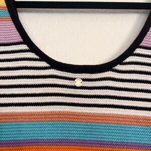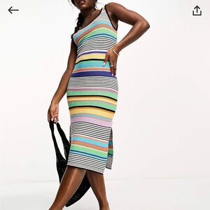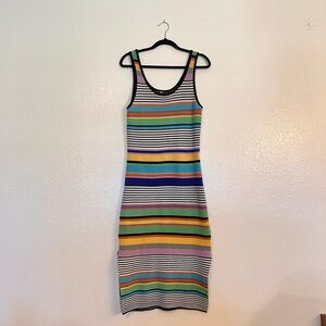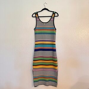 Knit midi dress with colorful stripes and a sleeveless cut. Perfect for casual wear.