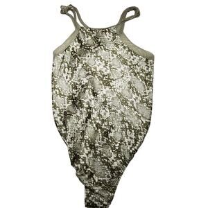 Free People Intimately NIGHTS OUT Snakeskin Print Bodysuit Moss Green L NWOT $68