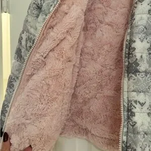 Can be worn with the pink fur out instead. Fully reversible!