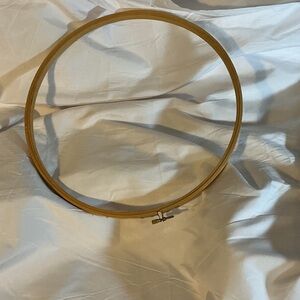 Round wooden embroidery hoop. Perfect for crafting and embroidery projects.