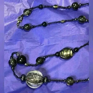 40” black and grey glass bead necklace
