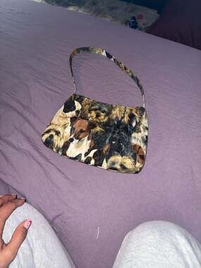 Handmade Terrier Print Shoulder Bag Set — includes a matching lined eyeglass case. This charming tapestry-style bag features various terrier and small dog breeds in a collage print.