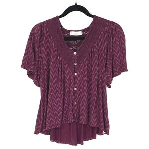 Lucky Brand Boho Blouse Women's Small Burgundy Embroidered V-Neck Top
