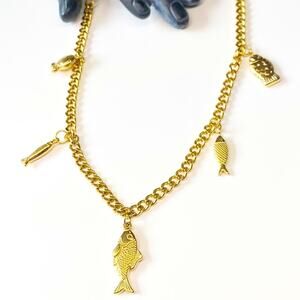 NEW Gold Fish Chunky Charm Necklace