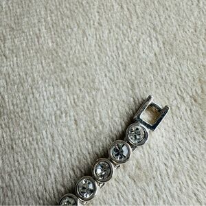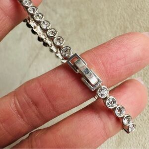 Silver Tone Bezel Set Tennis Bracelet | Clear Crystal Rhinestone | 7”