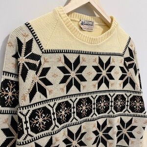 Fair Isle Fisherman Knit Crew Sweater Warren Knit Wool Blend Vintage Cream Navy