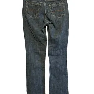 The COOGI Authentic Sexy Denim Jeans in size 7/8 feature embroidered pockets and a signature design, adding a touch of flair to the classic blue denim. With a low rise and straight leg fit, these jeans are made from a comfortable cotton blend fabric with a dark wash. The machine washable jeans are perfect for juniors looking for a stylish and versatile wardrobe staple. The brand's reputation for quality and attention to detail ensures a great addition to any fashion-forward outfit. Measures approximately 15" across the waist, 8" rise, and 30" inseam. Excellent condition