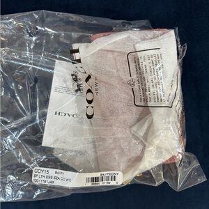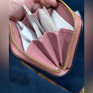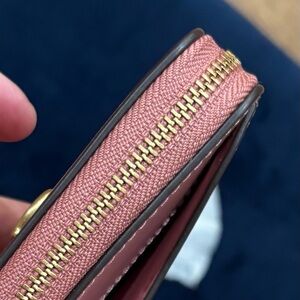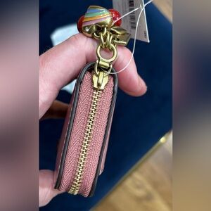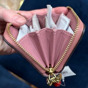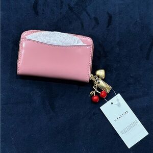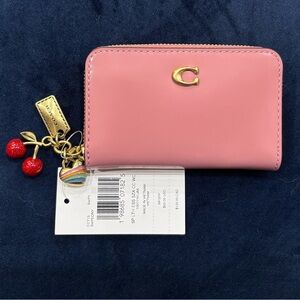 COACH Essential Spazzolato Leather Zip-around Card Case w/ Charms, peony, cherry