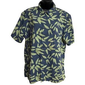 Quiksilver Men Waterman Aloha Hawaiian Shirt Bljue Green Tropical Large L Button