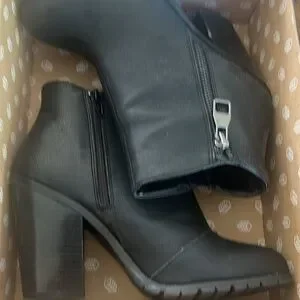 Chic black heeled boots with a sleek design. Perfect for elevating any outfit.( 4 inch heels) brand new heels in box