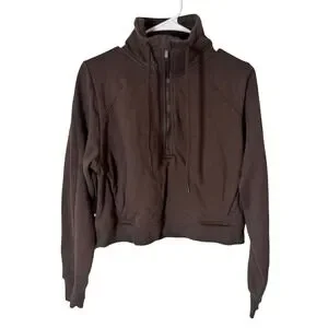All in Motion Brown Quarter Zip Cropped Pullover Sweatshirt Small Funnel Neck