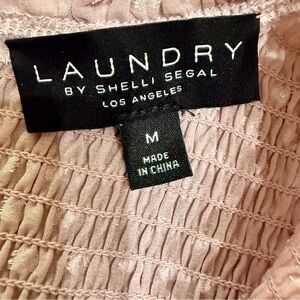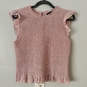 Laundry by Shelli Segal Ruffle / Elastic Blouse. It is a feminine, sleeveless top characterized by its all-over smocked texture and delicate ruffle details.