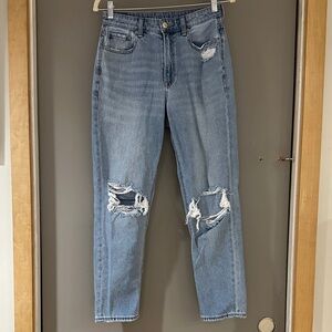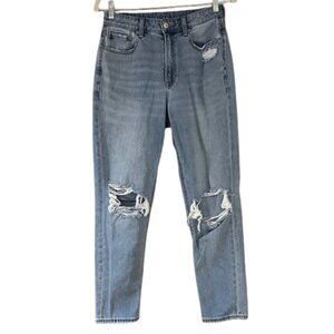 American Eagle Outfitters Light Blue Distressed Straight Leg Mom Jeans