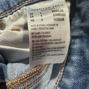 These American Eagle mom jeans feature a flattering high-rise fit with a relaxed straight leg and bold distressed knee details for that perfect lived-in look. The light wash makes them easy to style year-round.