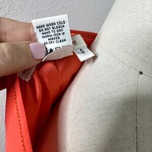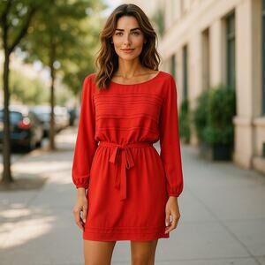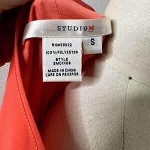 Studio M Dress Coral Orange Belted Long Sheer Sleeve Pleated Womens Size Small
