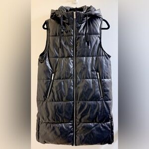 Vigoss Long Black Puffer Vest with Zipper Pockets Size M